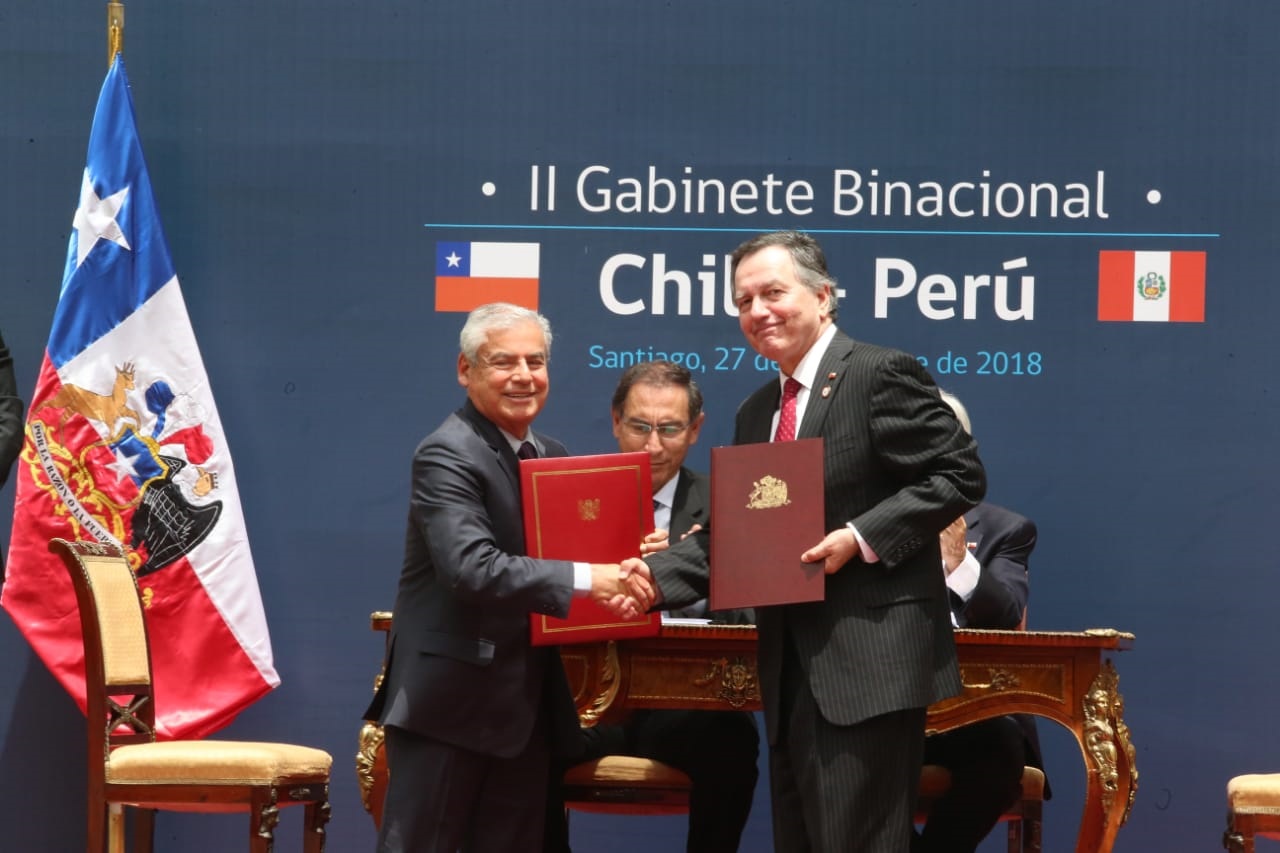 Con la suscripción del Acuerdo interinstitucional de cooperación en materia de lucha contra la corrupción, Perú y Chile sumarán esfuerzos para potenciar las acciones bilaterales orientadas a combatir este flagelo de manera decidida, destacó el presidente del Consejo de Ministros, César Villanueva, quien subrayó la importancia que reviste el instrumento bilateral, el cual suscribió a nombre del Gobierno peruano, en presencia de los presidentes de Perú, Martín Vizcarra, y de Chile, Sebastián Piñera, en el marco del II Gabinete Binacional realizado hoy en la ciudad de Santiago.