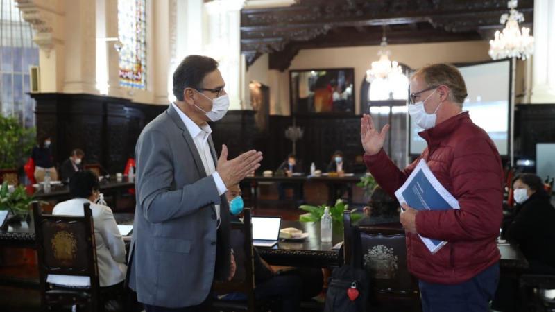 El presidente de la República, Martín Vizcarra, recibió hoy en sesión del Consejo de Ministros al alcalde de Lima, Jorge Muñoz, a fin de mejorar el trabajo articulado en el marco del estado de emergencia nacional decretado para contener el avance del nuevo coronavirus.