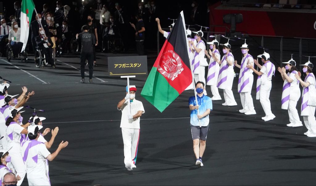 La bandera de Afganistán desfiló este martes en la ceremonia de inauguración de los Juegos Paralímpicos de Tokio en homenaje a la ausencia de los dos paratletas que no pudieron volar a Japón a raíz de la toma de poder de los talibanes.