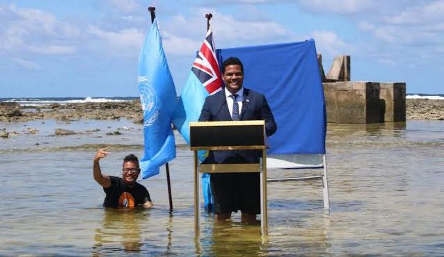 Como forma de solicitar apoyo internacional, el ministro de Relaciones Exteriores de Tuvalu, pequeña isla polinesia, se filmó con el agua hasta la cintura, en un video dirigido a la COP26 para simbolizar el peligro del cambio climático y de la subida del nivel de los océanos.
