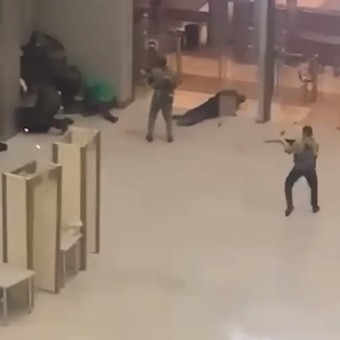 Imágenes difundidas muestran tres personas vestidas con ropa de camuflaje, irrumpiendo en el lugar y abriendo fuego indiscriminadamente en el interior de la sala usando fusiles automáticos. Otros videos muestran los cuerpos yaciendo en el suelo entre manchas de sangre.