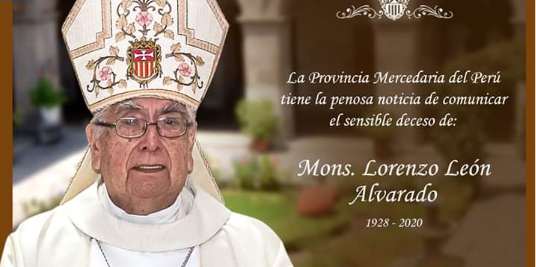 Con gran pesar, pero con la esperanza de la resurrección, la Conferencia Episcopal Peruana comunica a todo el pueblo de Dios el sensible fallecimiento de Monseñor Lorenzo León Alvarado O. de M., Obispo Emérito de la Diócesis de Huacho. Monseñor León partió a la Casa del Padre este lunes 17 de febrero por la mañana.