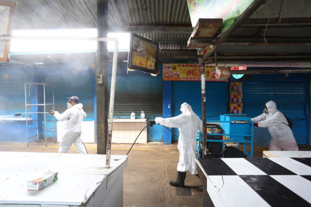 El Ministerio de Agricultura y Riego, en coordinación con la Municipalidad Distrital de Surquillo, desarrolló una jornada de desinfección en el mercado San Felipe, como parte del apoyo que se despliega a nivel nacional para minimizar los riesgos de contagio del coronavirus (Covid-19).
