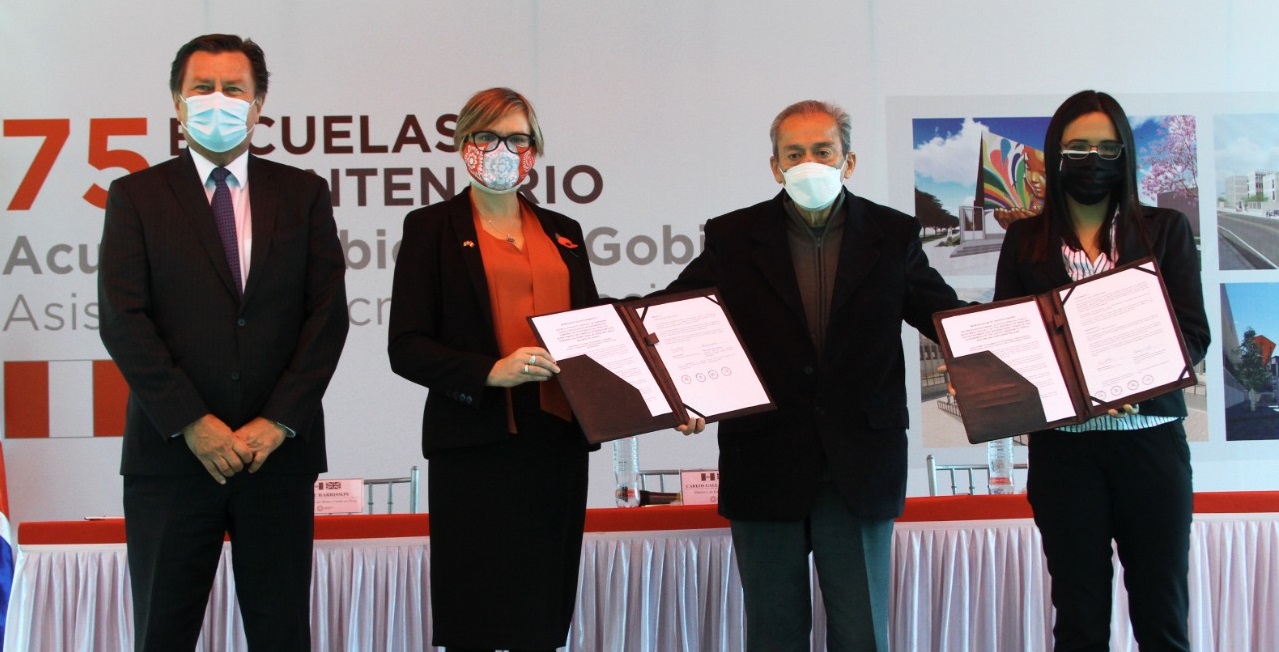 En el marco del Proyecto Especial de Inversión Pública (PEIP) “Escuelas Bicentenario”, el ministro de Educación, Carlos Gallardo, y la embajadora británica en el Perú, Kate Harrington, suscribieron en la víspera el contrato para la construcción de 75 instituciones educativas en 9 regiones del país con una inversión de 2800 millones de soles.