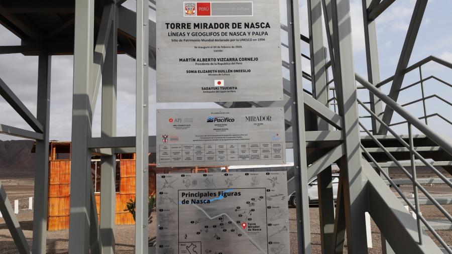 La Ministra de Cultura, Sonia Guillén Oneeglio, inauguró la nueva Torre Mirador de las Líneas de Nasca, que tendrá como fin de contar con una nueva y moderna estructura, que permitirá a mayor número de turistas avistar y disfrutar las famosas líneas y geoglifos, reconocidas como Patrimonio Mundial en el año 1994.