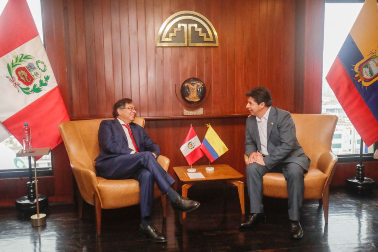 En la sede de la Secretaría General de la Comunidad Andina (CAN) en Lima, el mandatario Pedro Castillo se reunió hoy con su homólogo de Colombia, Gustavo Petro.