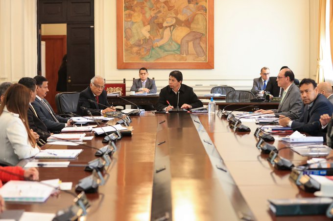 A través de su cuenta de Twitter , el presidente de la República, Pedro Castillo, informó que el Consejo de Ministros evalúa, en su sesión de hoy, temas de interés nacional en salud, trabajo, infraestructura.