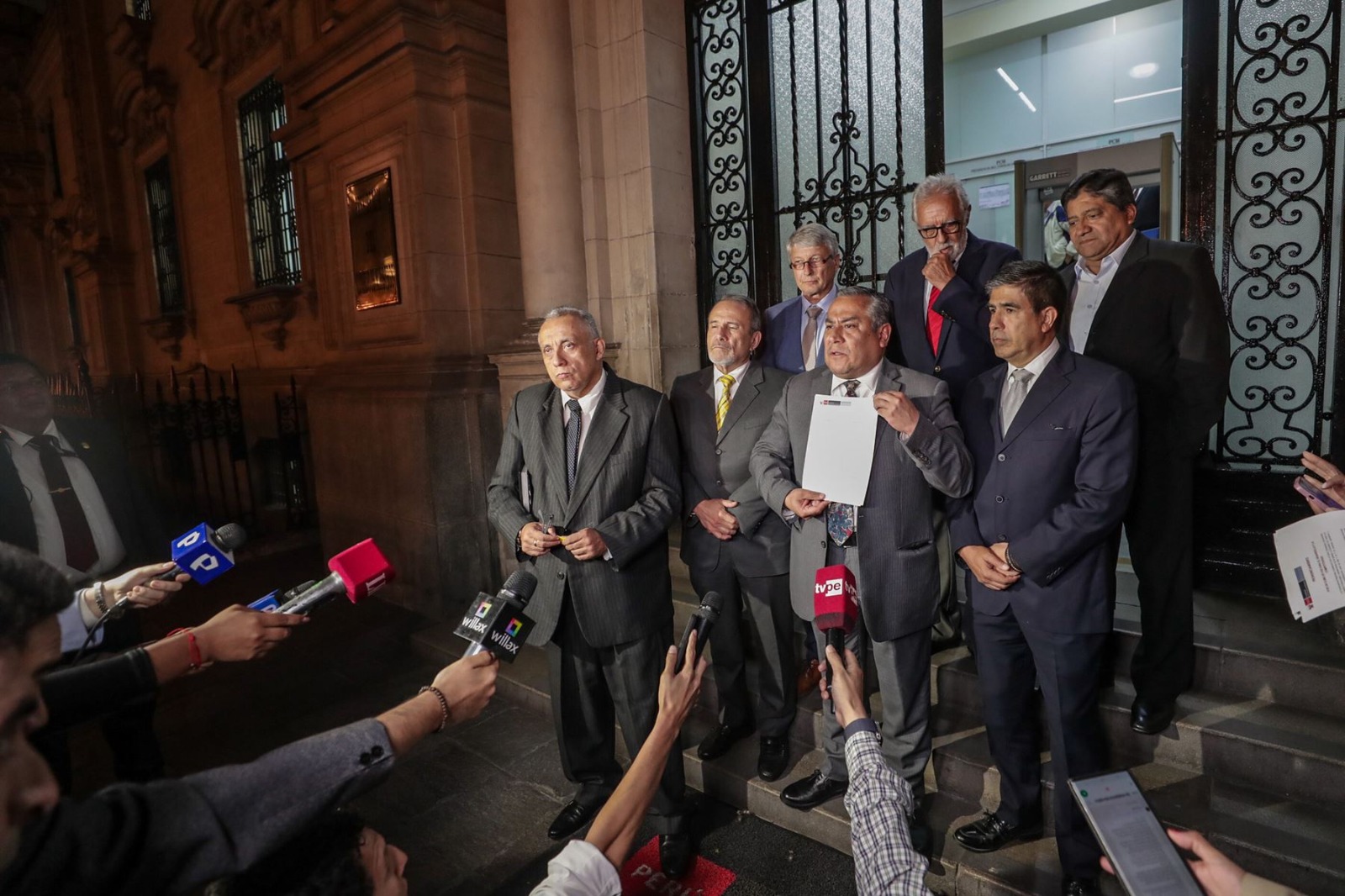 Además de autoridades subnacionales, el documento contó con la firma de representantes de diferentes agrupaciones, como gremios de transportistas formales, del sector turismo, comerciantes de Mesa Redonda y Gamarra, el Consejo Nacional de Decanos de los Colegios Profesionales del Perú, representantes de iglesias y fundaciones, entre otros grupos.