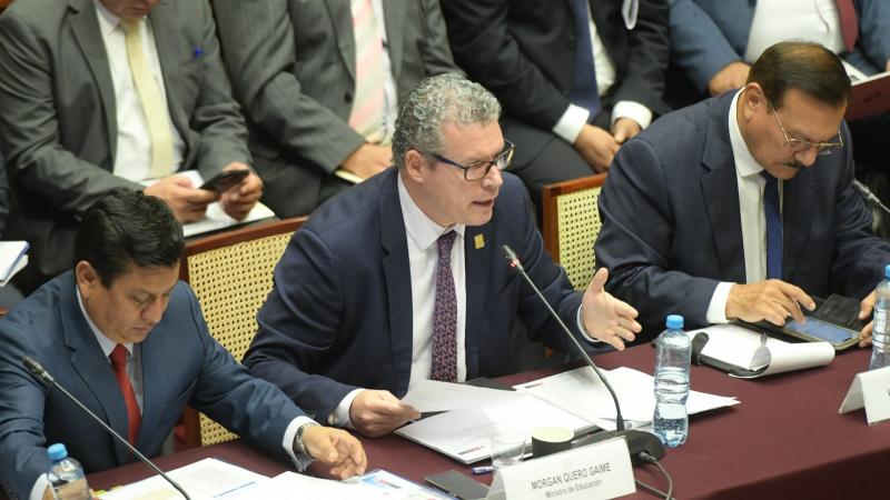 El ministro de Educación, Morgan Quero, afirmó en el Congreso de la República que las modificaciones presupuestarias dispuestas en el primer bimestre del año en su sector están orientadas a invertir S/266.9 millones en la mejora de la calidad de la educación y en avanzar hacia el cierre de la brecha de infraestructura educativa en todas las regiones del país.