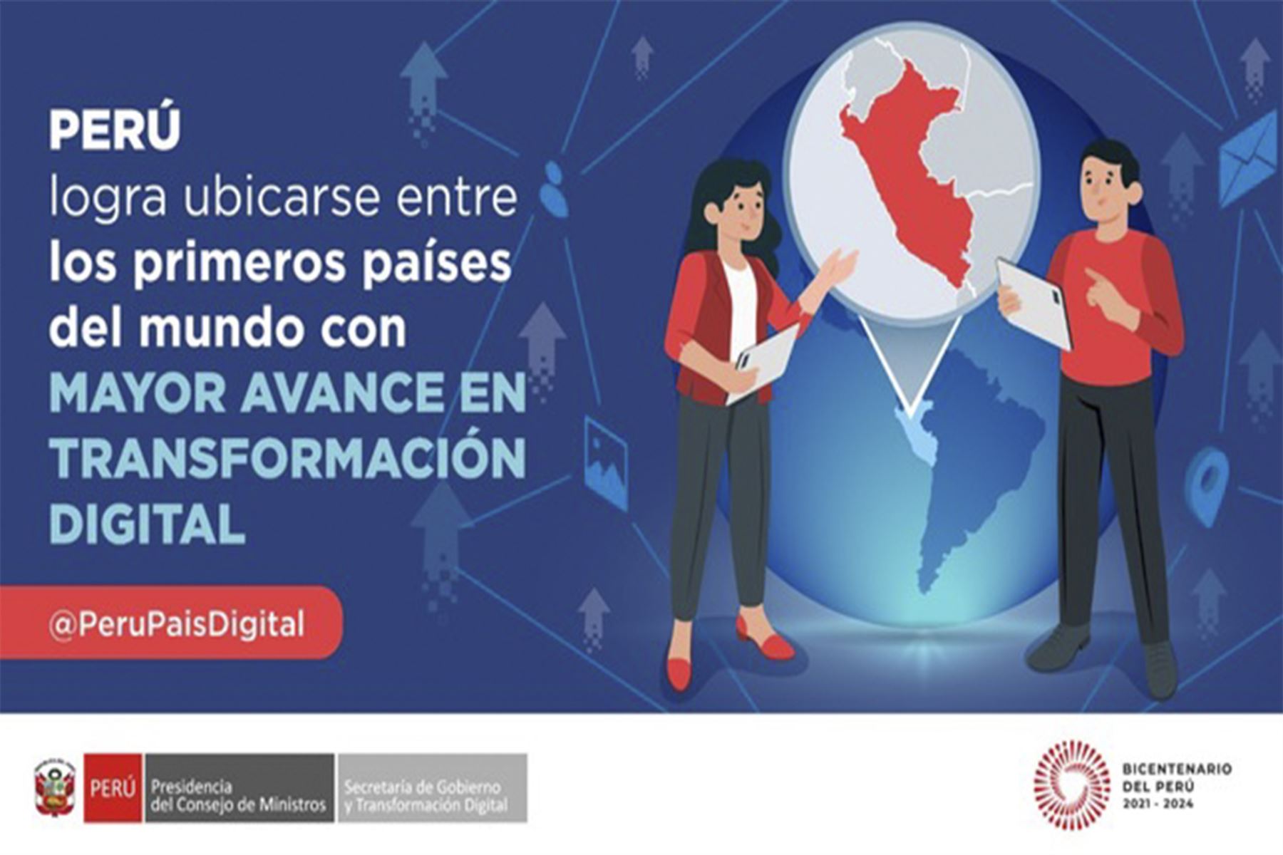 La Presidencia del Consejo de Ministros, a través de la Secretaría de Gobierno y Transformación Digital, lidera los esfuerzos para garantizar el acceso inclusivo, seguro y de calidad al entorno digital en el país. En esa línea, durante el 2022, Perú logró consolidarse en los primeros puestos de los rankings sobre transformación digital del Banco Mundial y Naciones Unidas.