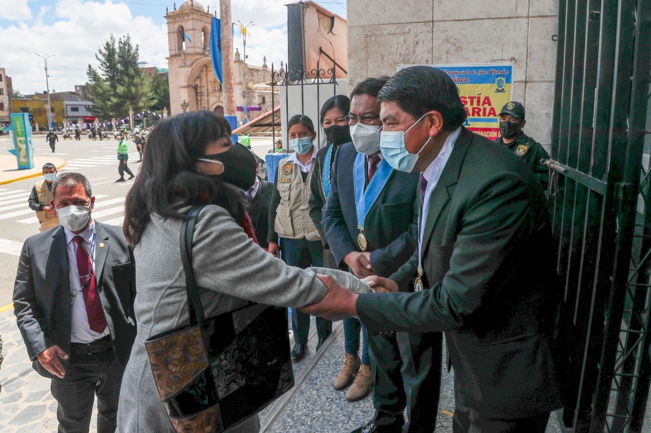 Previamente, la jefa del Gabinete Ministerial sostuvo una reunión con los alcaldes de Juliaca y Puno.