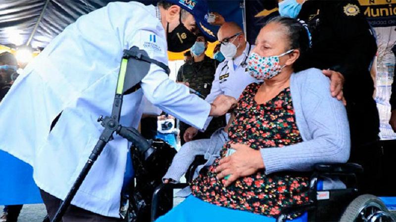 El jefe de Estado acudió a la colonia Mártires del Pueblo del asentamiento humano Mario Alioto López Sánchez, uno de los más grandes de Centroamérica, en el municipio de Villa Nueva, contiguo a la Ciudad de Guatemala como parte del esfuerzo de "vacunación comunitaria" que su Gobierno inició un día antes.