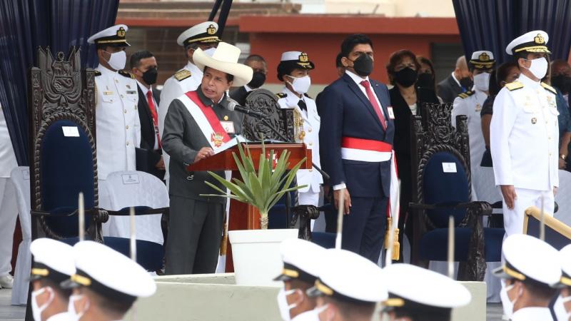 En la ceremonia de graduación de los alféreces de fragata de la Escuela Naval del Perú, participa hoy el presidente de la República, Pedro Castillo desde las 8.30 horas.