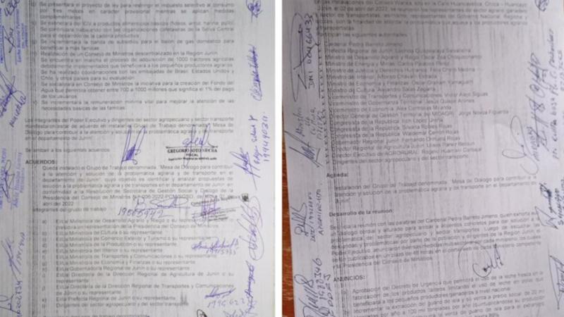 “Cuando prima el diálogo y el entendimiento en Democracia todo es posible. Acta con la cual los dirigentes se comprometen a liberar la Carretera Huancayo Jauja”, sostuvo el funcionario al mostrar el documento de compromiso en su cuenta de Twitter.