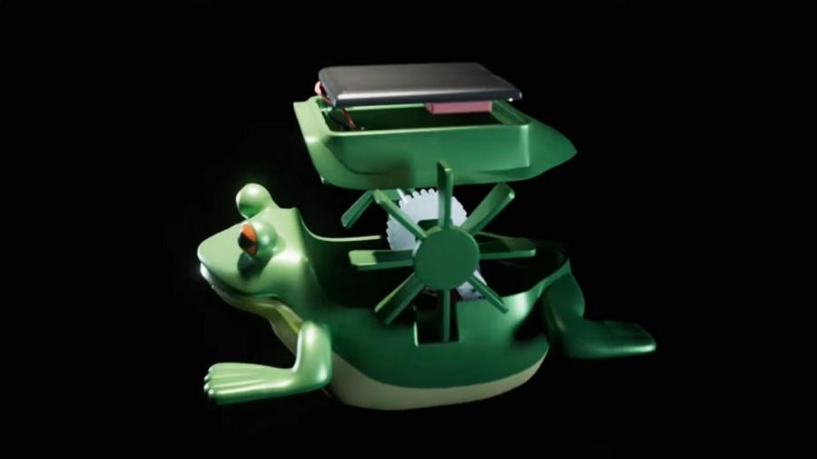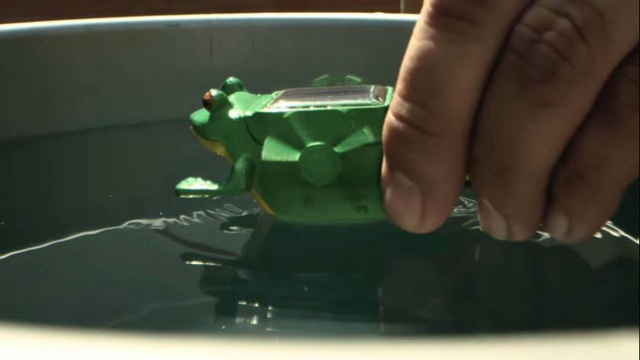 El especialista también resaltó que este diseño fue todo un reto, por su tamaño reducido y por sus características, que garanticen su capacidad para flotar como su eficiente captación de energía solar. Se hicieron varios experimentos y pruebas para lograr el desplazamiento y la generación de ondas en el agua, incluyéndose así dos ruedas con paletas ubicadas a cada lado del cuerpo que son accionadas por un pequeño motor que recibe energía de una celda solar ubicada en el lomo del sapito.