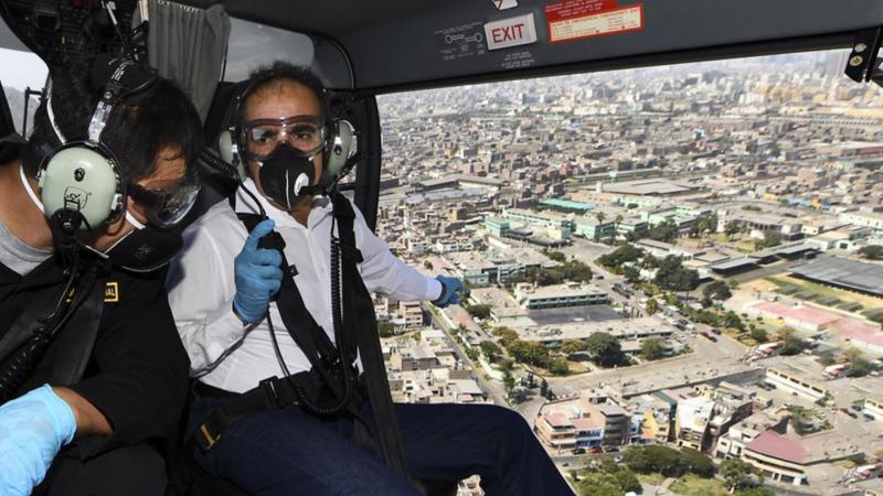 El ministro del Interior, Gastón Rodríguez Limo, realizó esta tarde un sobrevuelo por la ciudad de Lima, con el fin de verificar el cumplimiento del aislamiento y la inamovilidad social obligatoria dispuesta por el Gobierno para todos los peruanos, en la lucha para frenar la pr