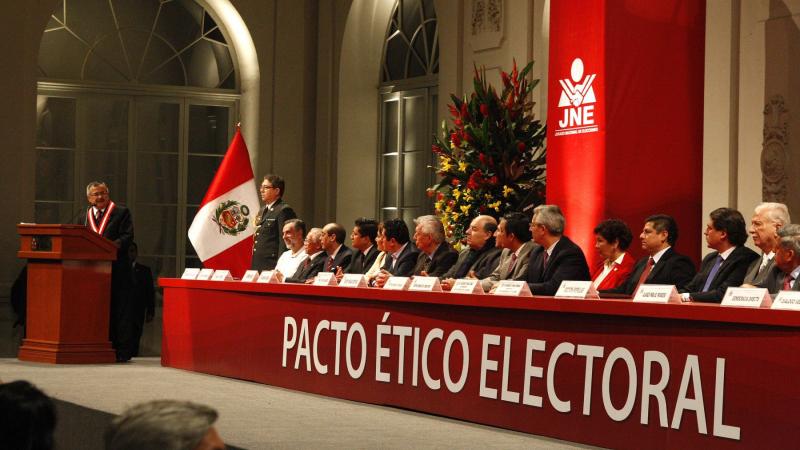 Los partidos políticos que participarán en las elecciones generales del 2016 suscriben, a las 11:00 horas de este miércoles, el Pacto Ético Electoral promovido por el Jurado Nacional de Elecciones (JNE), en el Centro de Convenciones de Lima
