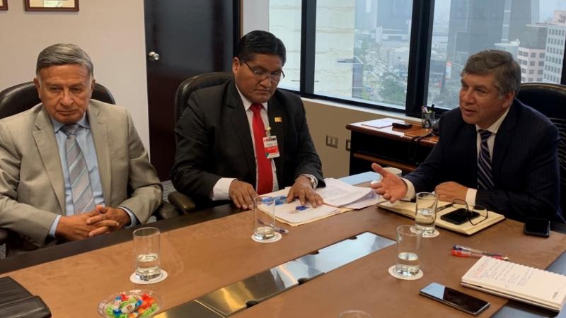 El ministro de Vivienda, Construcción y Saneamiento, Miguel Estrada, y el viceministro de Construcción y Saneamiento, Juan Tarazona, sostuvieron una reunión con el gobernador regional de Tacna, Juan Toconi, el gerente de regulación tarifaria de Sunass, Max Carbajal, y los congr