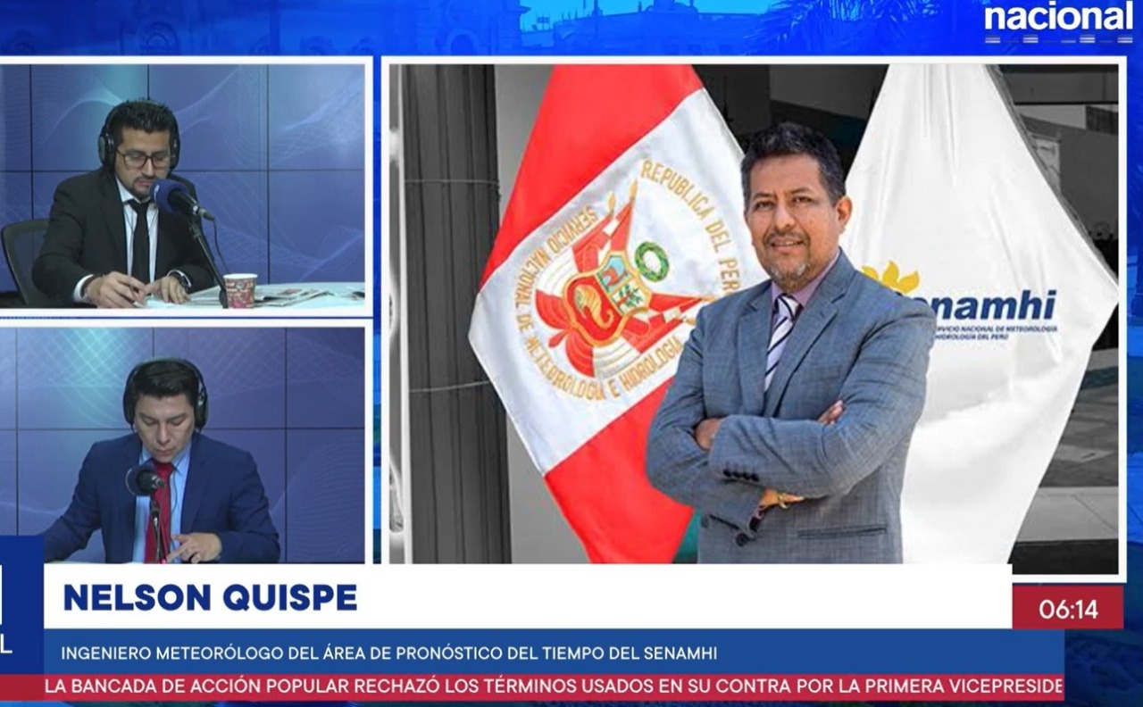 En el informativo por Nacional, señaló que en Lima la temperatura podría acercarse a los 8°C con probabilidad en el día de la aparición de ligeros brillos solares de los cuales no nos podemos confiar. Similar panorama en las zonas alto andinas donde las radiaciones ultravioletas es mayor causando insolaciones fuertes.