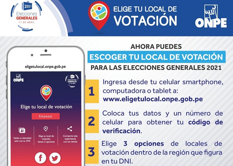 “En principio esto vence hasta el 31 de diciembre, por medio del aplicativo se puede escoger tres locales de votación más cercano para poder votar en estas Elecciones Generales 2021, que se realizará el próximo 11 de abril”, expresó.