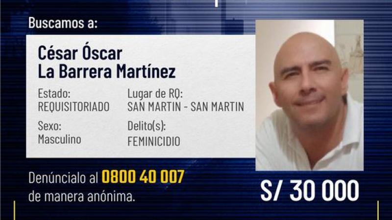 La Barrera, de 56 años, tiene un proceso en el Perú por el delito de feminicidio con una pena máxima de cadena perpetua. “Esto delata una alta peligrosidad, lo que se debe tomar en cuenta al momento de su captura”, agregó el jefe de Interpol Lima.