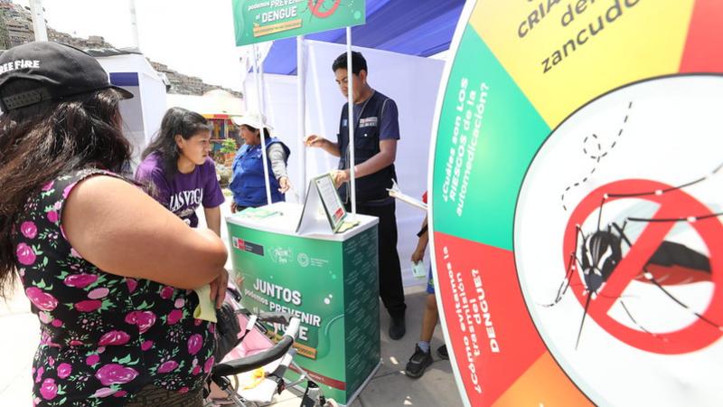 Además, con la participación del personal de la Diris Lima Norte se logró instalar un módulo informativo de lucha contra el dengue, donde se sensibilizó a la ciudadanía en el correcto lavado, escobillado y tapado de recipientes donde se almacena agua; la identificación y eliminación de los potenciales criaderos de zancudos; así como reemplazar el agua de los floreros por arena húmeda.