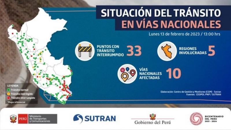 Podrían afectarse 100 provincias de las regiones de Áncash, Apurímac, Arequipa, Ayacucho, Cajamarca, Cusco, Huancavelica, Huánuco, Ica, Junín, La Libertad, Moquegua, Pasco, Puno, San Martín, Tacna y Lima.